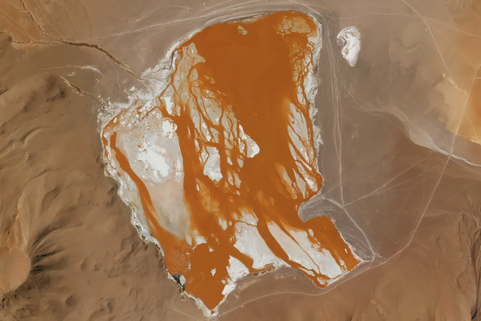 Instead, the first picture shows the Laguna Colorada in the Bolivian Andes in South America from space.