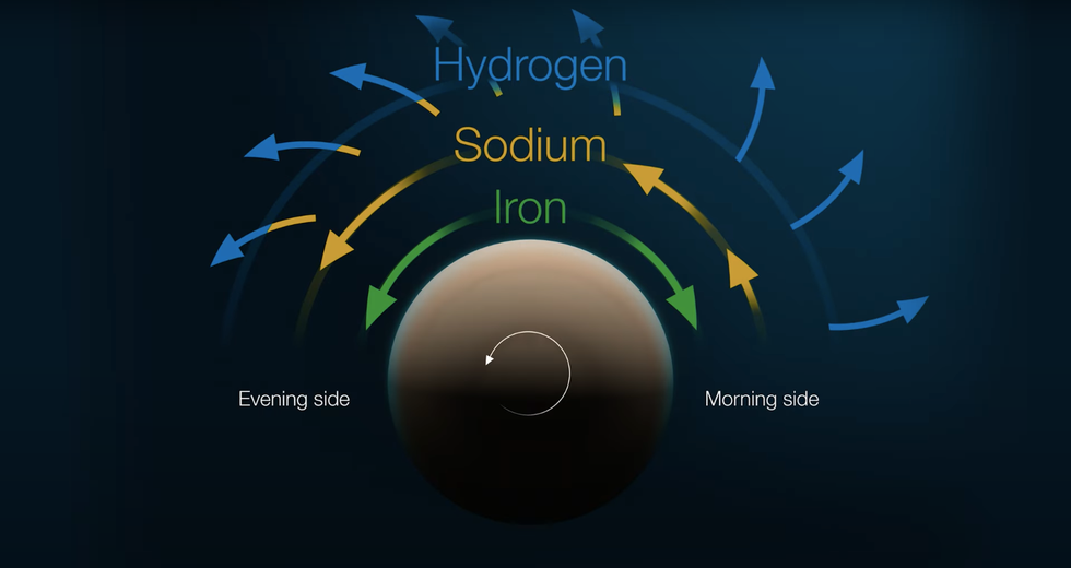 The sodium jet stream is said to be very potent, as it accelerates when it flows into the planet’s hot daylight side, fiercely churning the upper atmosphere.