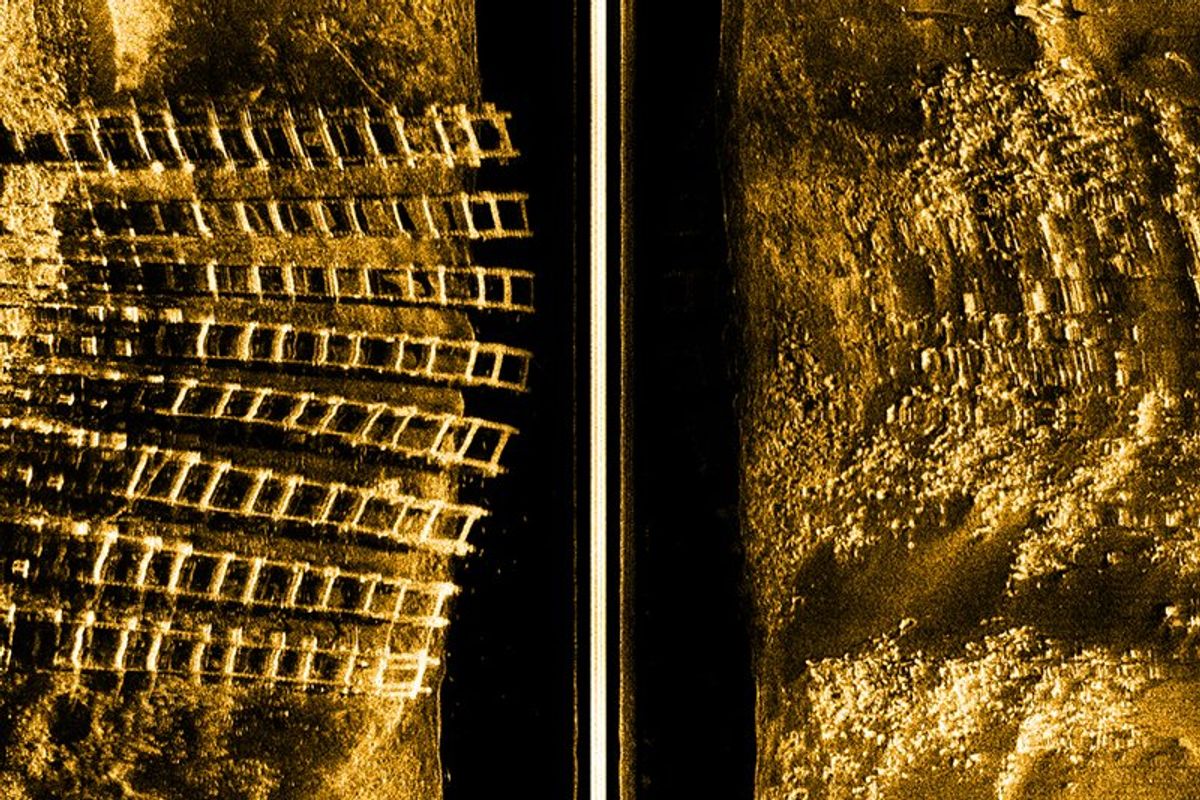 Using sonar technology, the team identified huge geometrical structures deep down on the seafloor.
