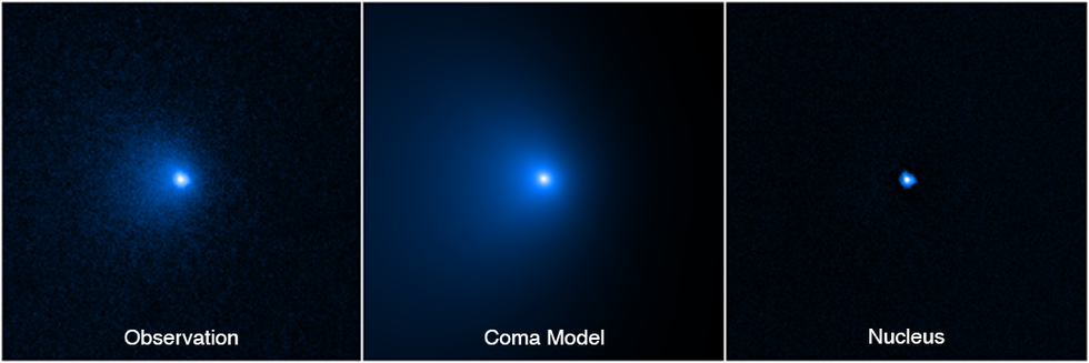 Though thanks to the Hubble images showing a bright light at the nucleus and a computer model that can adjust the dust to fit the images and reduce the dusty coma's glow so a solid "star-like nucleus" is left behind.