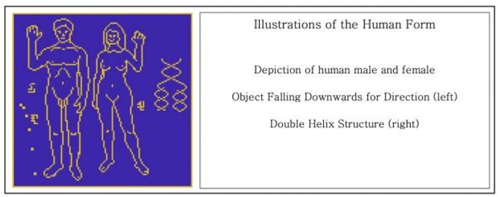 It's all being sent in the form of a binary code, and it’s not the first time naked depictions of humans have been used to try and communicate in such a way.