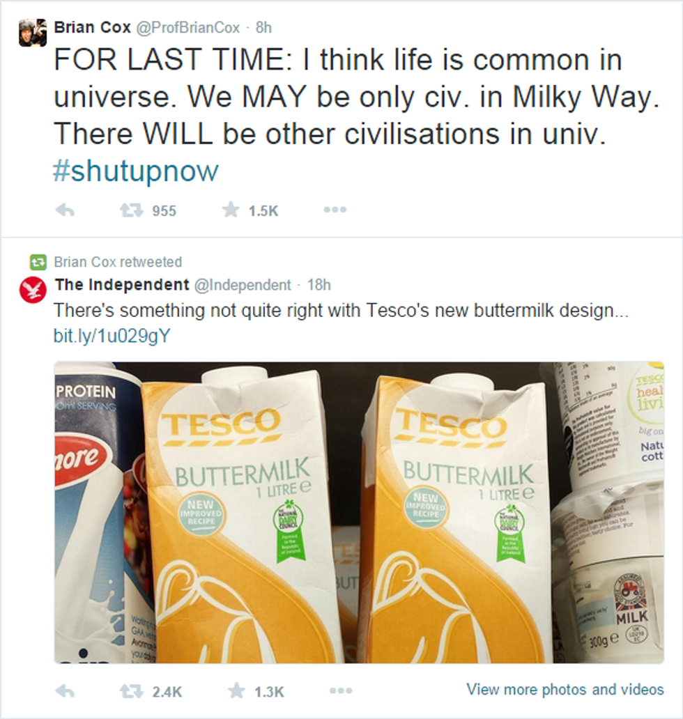 In another tweet Prof Cox clarified the nuances of distinguishing between civilisations and life; and the universe, which is theoretically infinite, and our galaxy, which is finite.