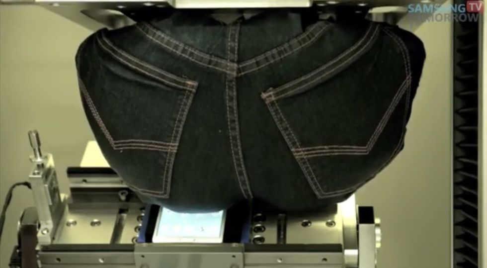 The reason? A robot shaped like a human bum — specifically designed to sit on phones to simulate years of pocket pressure and everyday use.