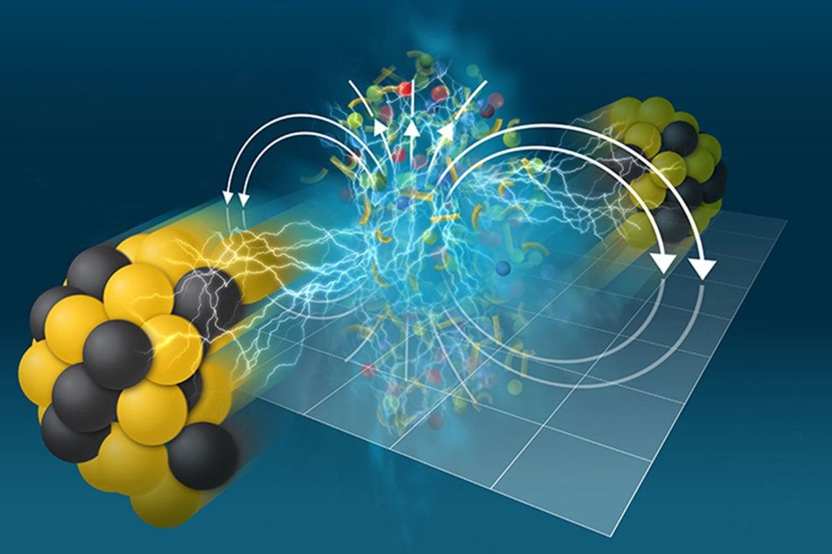 The powerful magnetic field generated by this process induced an electrical current in the quarks and gluons that were “set free” from the protons and neutrons that separated during the smashups.