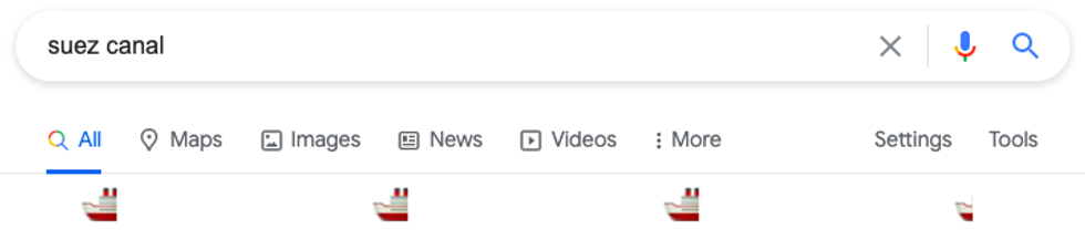The simple animation involves not much more than a few ships emojis moving along (a lot quicker than the real Ever Given) just below the search bar.