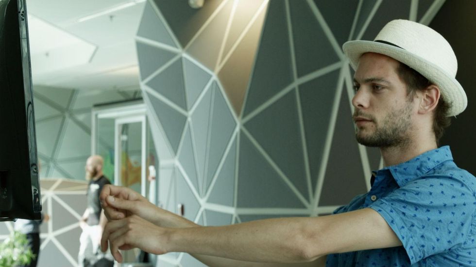 The exo-skeleton project, which uses motion-sensor technology, is termed "segregation of joy" by Dutch designer Govert Flint. His thesis is that full body movement correlates with happiness but yet humans spend days on end stuck sitting down staring at a screen.