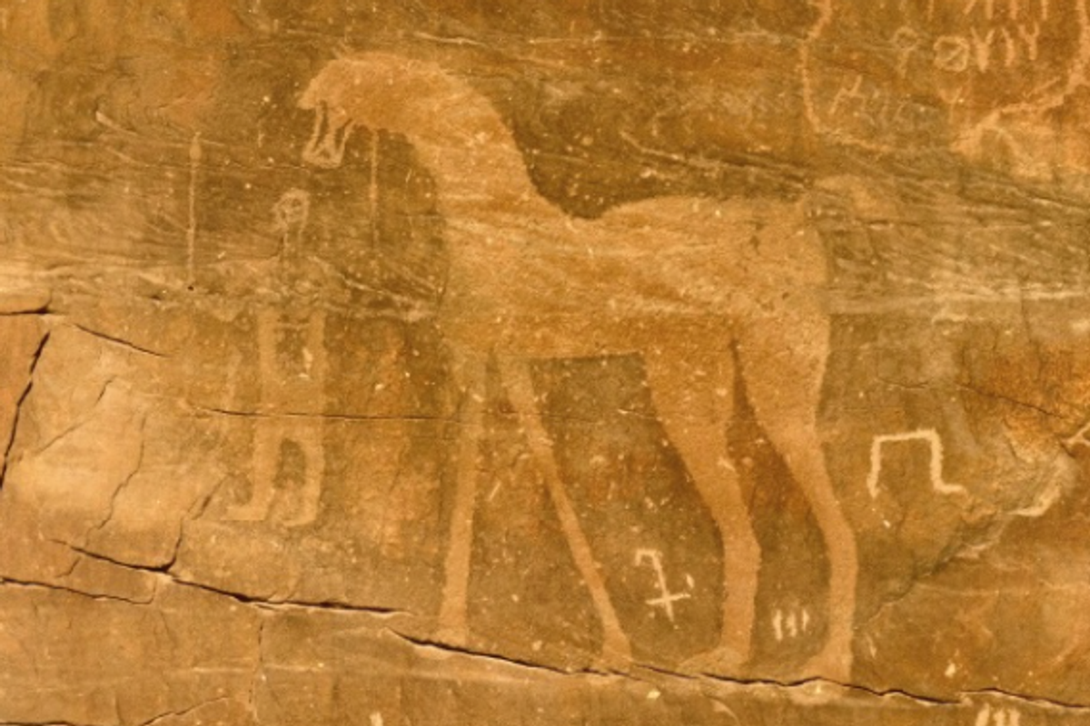 That’s right, Al Naslaa is a petroglyph, meaning a rock carving, and this one is inscribed with depictions of hunting scenes featuring Arabian horses and ibexes (wild goats).