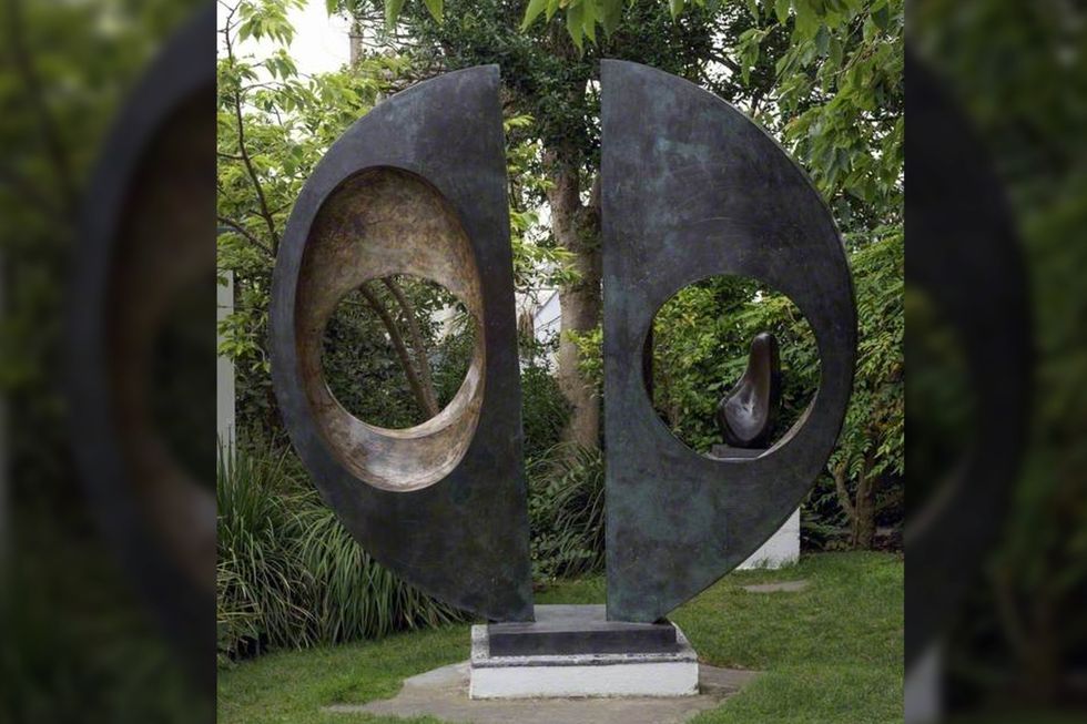 Some people believe this artwork is evidence that the divided rocks, which sit upon two pedestals, were not formed by natural forces alone.