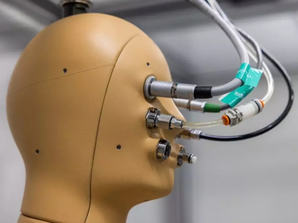 The technologically-advanced "thermal mannequin" known as ANDI has 35 controlled surfaces that allow the robot to produce sweat through 'pores'.