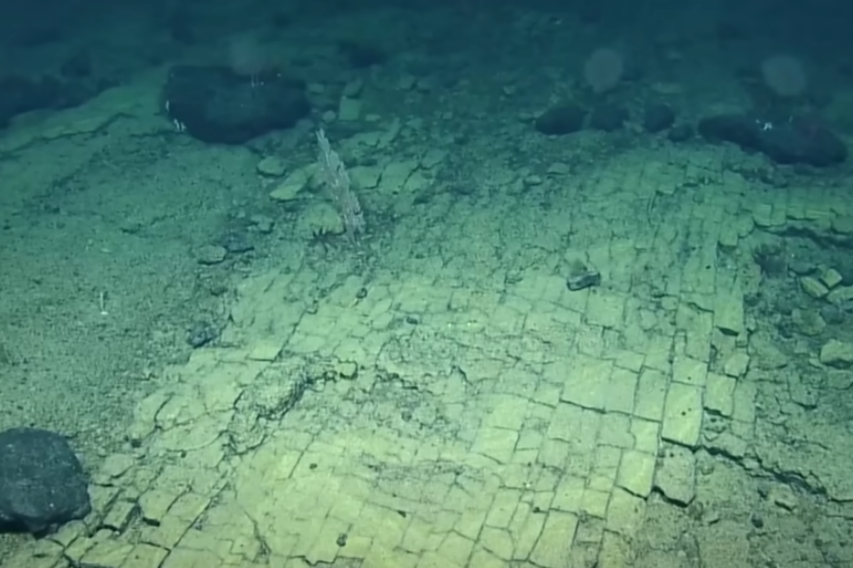 While they live-streamed their findings, the researchers were shown encountering a formation that, at first glance, appeared to be a man-made brick road that included evident rectangular blocks.