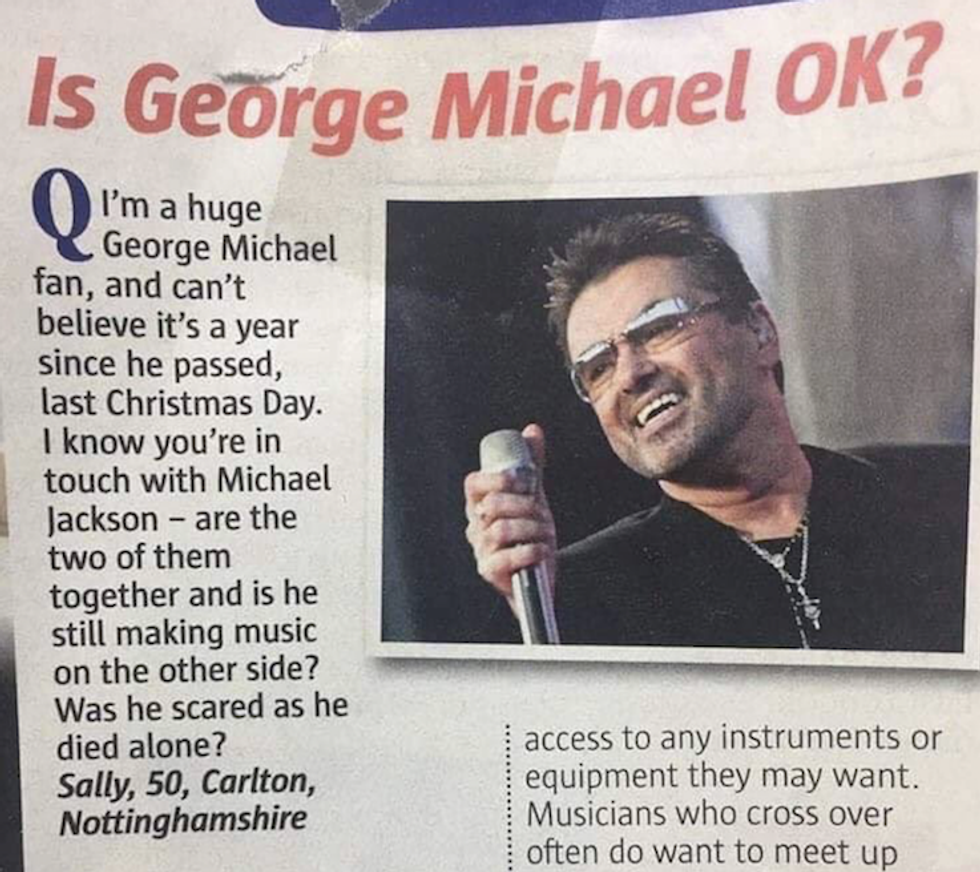 Presumamly getting his 'spirit guide' on the case right there and then because he managed to somehow conjure up an incredibly insightful response to reveal the antics of the late Careless Whisper singer.