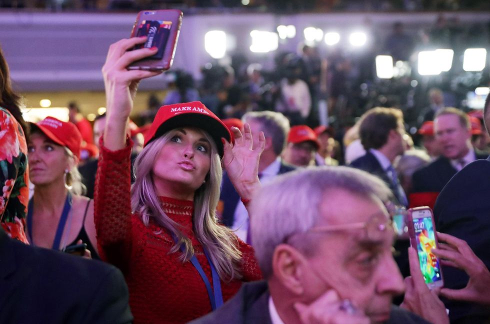 A Republican takes a selfie during election night at New York's Hilton, 8 November 2016