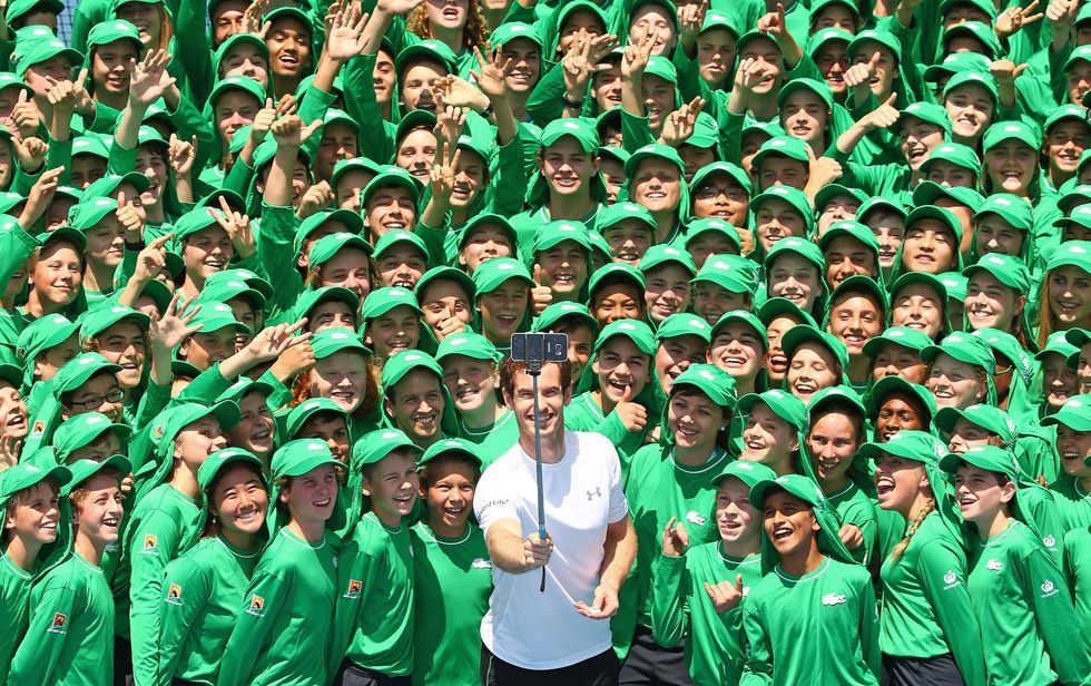 Murray takes a selfie with ball kids from Australia and overseas, ahead of the 2016 Australian Open, 12 January 2016