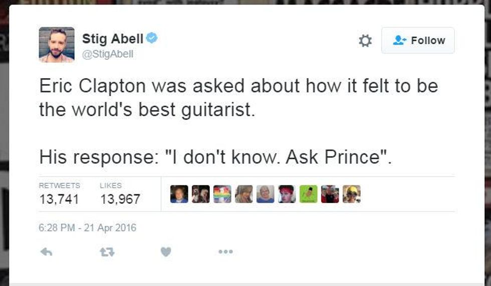 When asked how it felt to be the world’s best guitarist, Clapton was said to have replied “I don’t know. Ask Prince”.