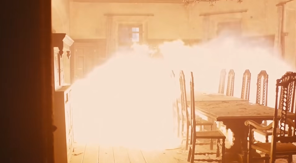 Grenades also caused intense fires after they were thrown through windows into the building, topped off with a homemade gas canister bomb triggered by Bond, which caused a massive explosion.