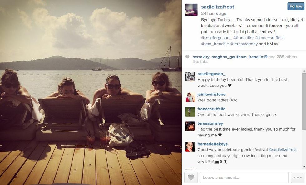 Moss was on her way back from a luxury weekend in Bodrum, Turkey, celebrating her the 50th birthday of her friend, actress and designer Sadie Frost.