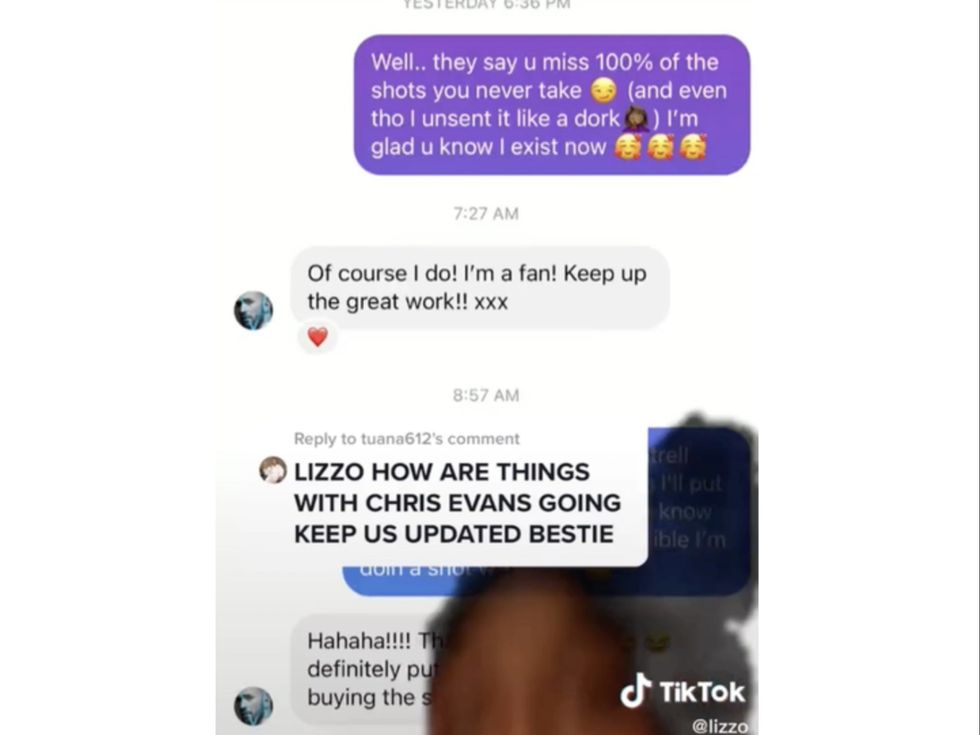 Responding to a TikTok query which read: “Lizzo, how are things with Chris Evans going? Keep us updated bestie.”
