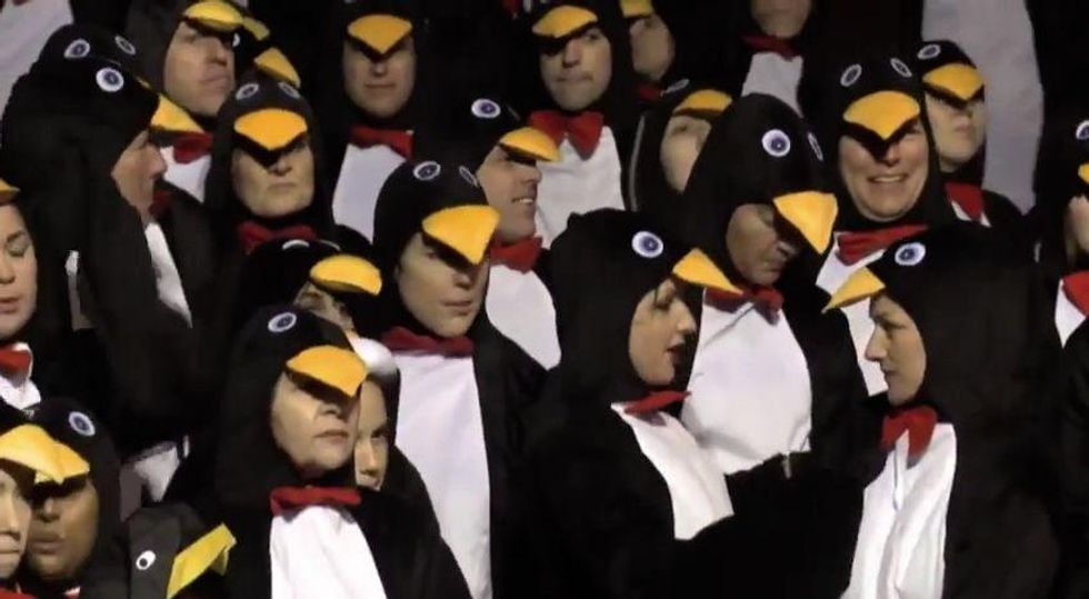 Waddling into the record books were 373 people who turned out to Queen’s Walk in London dressed as penguins. Just pipping the 1.85m-tall high heel unveiled in New York as most absurd sight of the day.