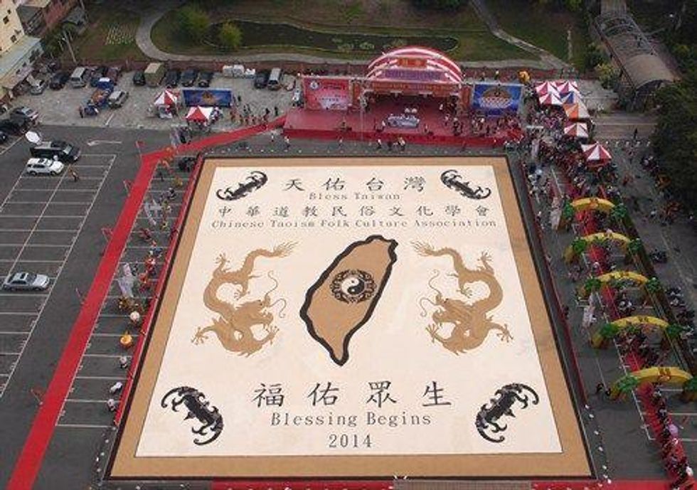 Stuck for something to do this weekend? How about crafting a 1,798sq m mosaic made from rice grains? That’s what Taiwan’s Chinese Taoism Folk Culture Association did to earn its entry.