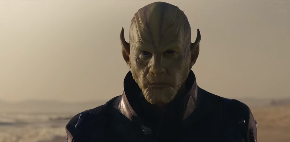 And then Fury transforms into the Skrull who used to be the Big Bad in Captain Marvel before he turned out to be the goodie.