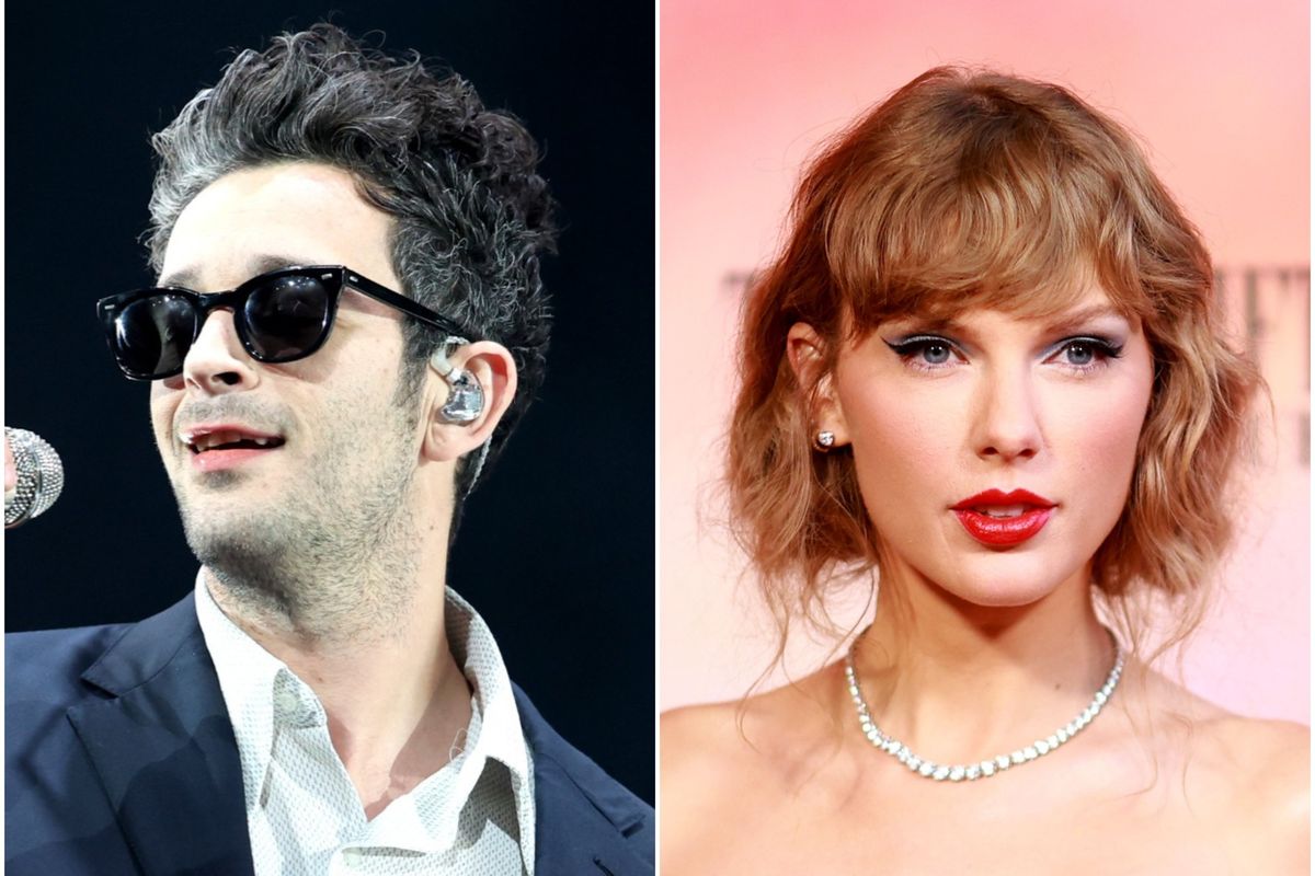 (Left) Matty Healy of The 1975 performs onstage at the 2024 iHeartRadio ALTer EGO Presented by Capital One at the Honda Center on January 13, 2024 and (right) Taylor Swift attends "Taylor Swift: The Eras Tour" Concert Movie World Premiere at AMC The Grove 14 on October 11 2023.