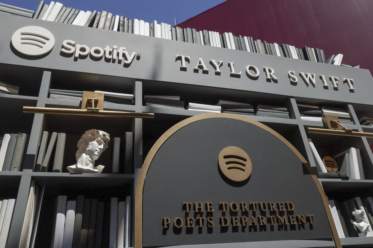 General atmosphere of Spotify's Taylor Swift pop-up at The Grove for her new album "The Tortured Poets Department" at The Grove on April 16, 2024 in Los Angeles, California.