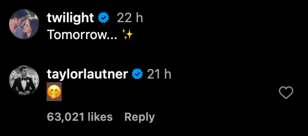 In the comments section of the post, Lautner further teased fans as he wrote the "🤭" emoji.