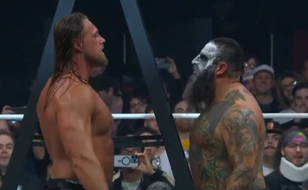 We've barely had time to a catch a breath but there is now a tag team ladder match on now which has prompted the crowd to chant 'MEAT' every time Big Bill and Brody King go at it. We'll allow as they are probably confused at the situation of the main even as we are.