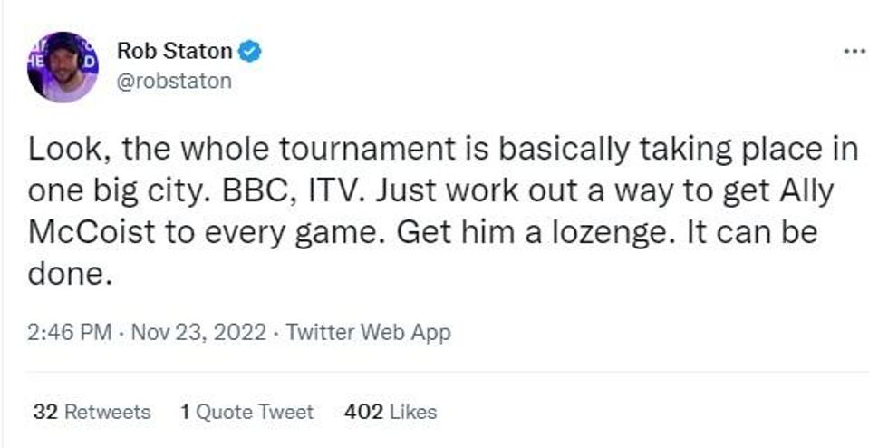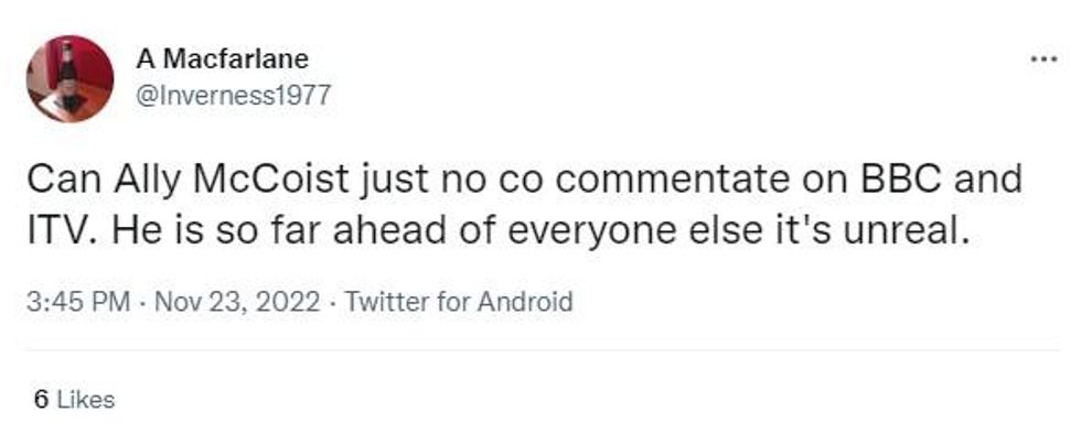 Footy fans soon took to Twitter to praise McCoist's commentary, describing him as "the best thing about this World Cup," and have requested him to do coverage on more matches with different broadcasters.