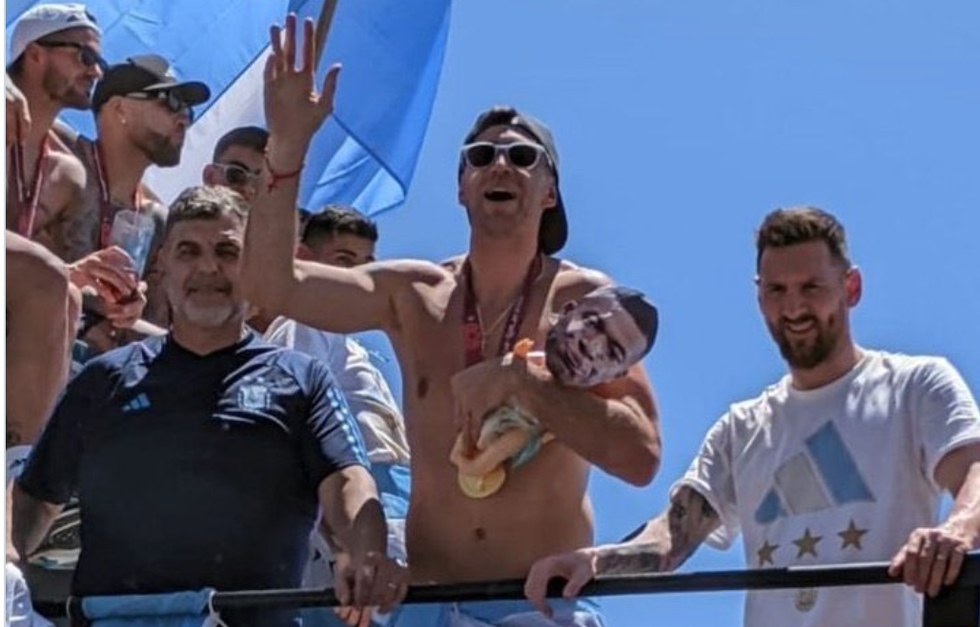 Martinez also turned heads when he was spotted cradling a baby doll with a photo of Mbappe's face taped on during Argentina's World Cup victory parade.