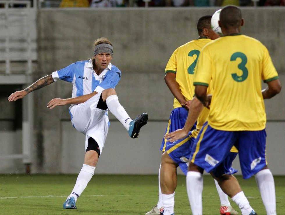 Daniel Cordone, who played briefly for Newcastle United, appeared at the match between former Argentina and Brazil players to imitate the man who played 50 times for his country but hadn't turned up.