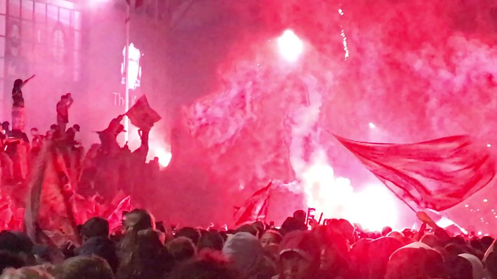 Fireworks and flares set off at Anfield as Liverpool lift the Premier League trophy