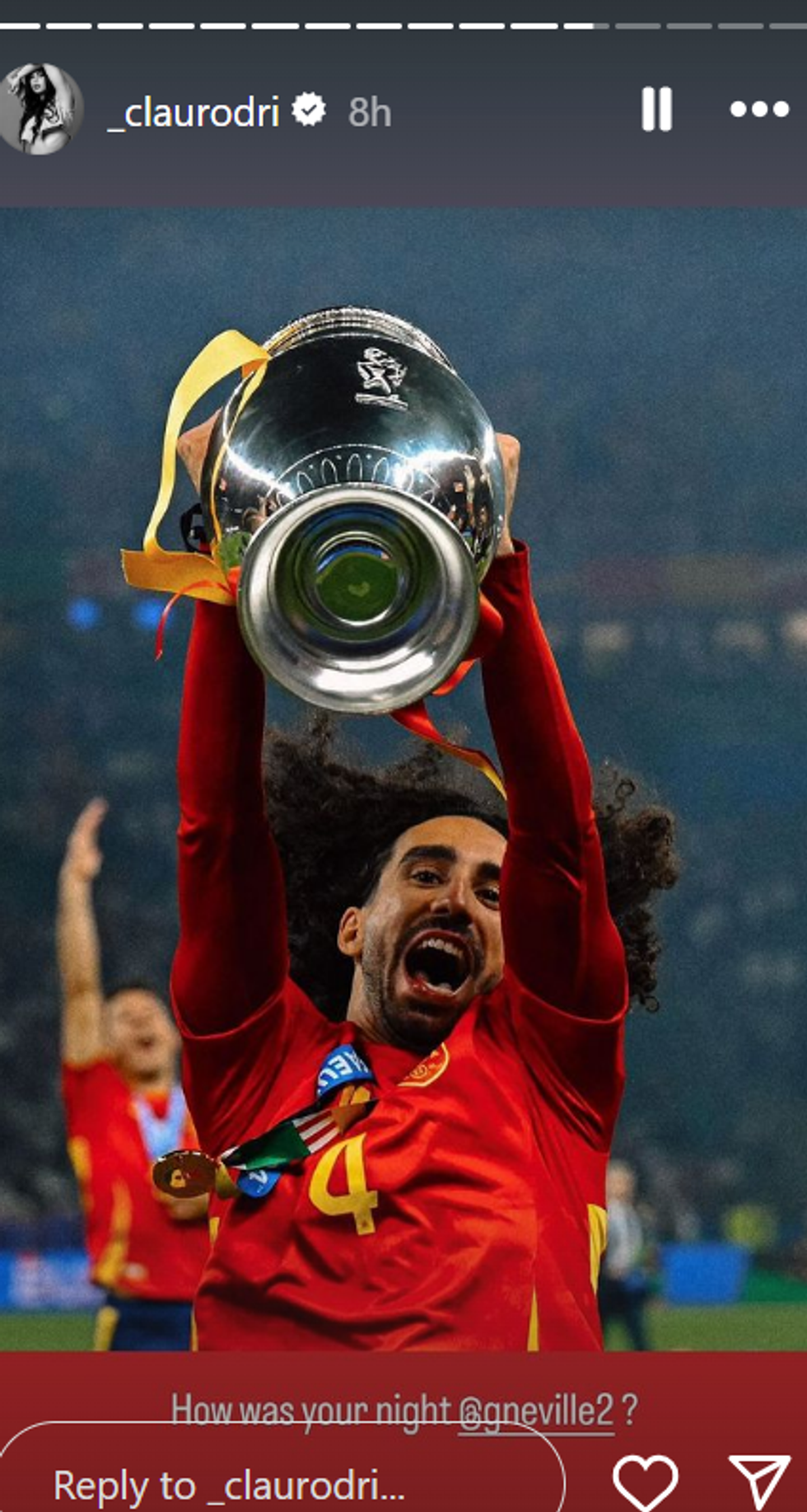 Cucurella's girlfriend Claudia Rodriguez also hit back at Neville, posting a picture with the caption: "How was your night, @gneville2?"