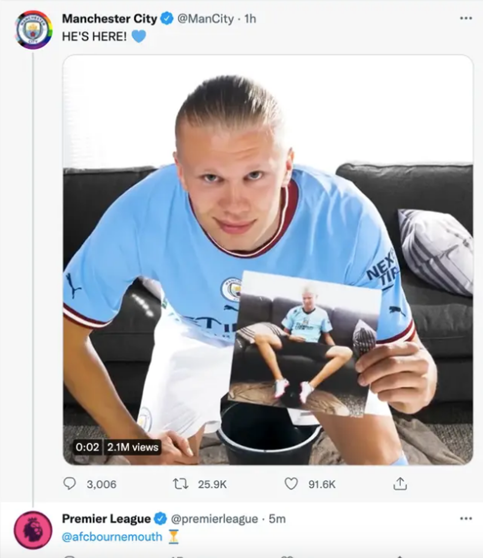 The account replied to Man City’s post about the signing of Haaland by writing the word “Bournemouth” alongside an hourglass emoji.