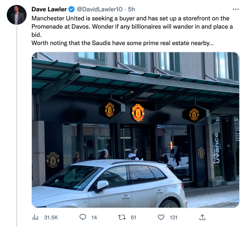 Manchester United set up a storefront in the mountain resort town of Davos in Switzerland - leading to speculation they’re trying to lure in new buyers.