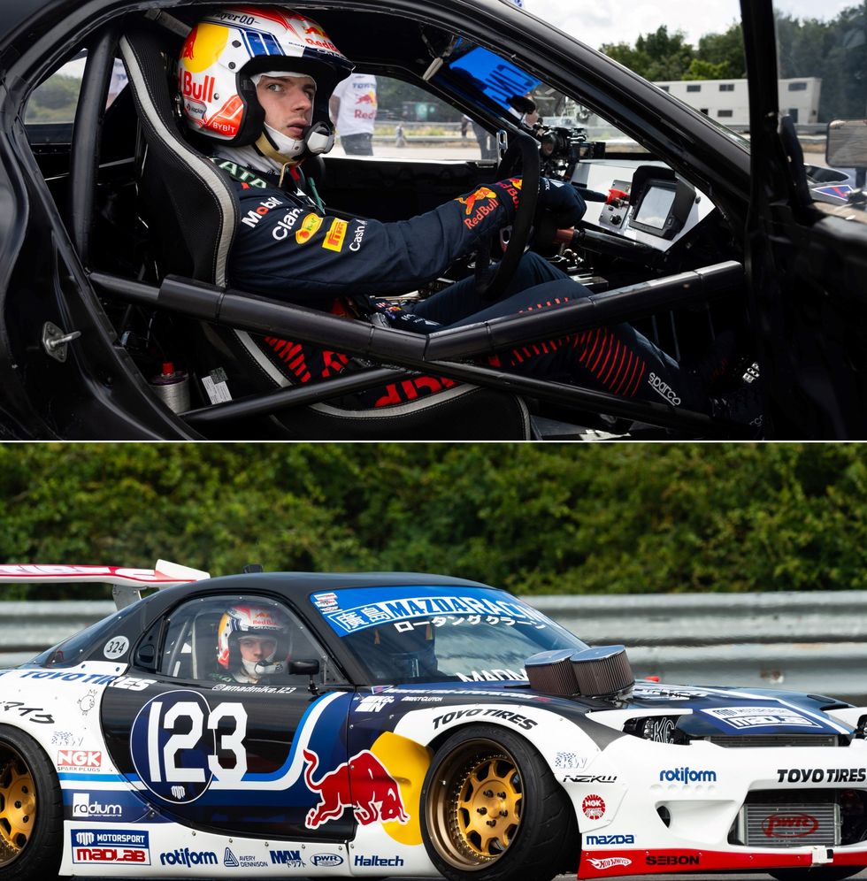 It was then Verstappen’s turn to get behind the wheel of Whiddett's custom-built ‘MAD BUL’ – an FD3S Mazda RX-7 with 600HP (just over half the HP to an F1 car - 1050HP) which makes performing manoeuvres while travelling sideways more difficult to execute.