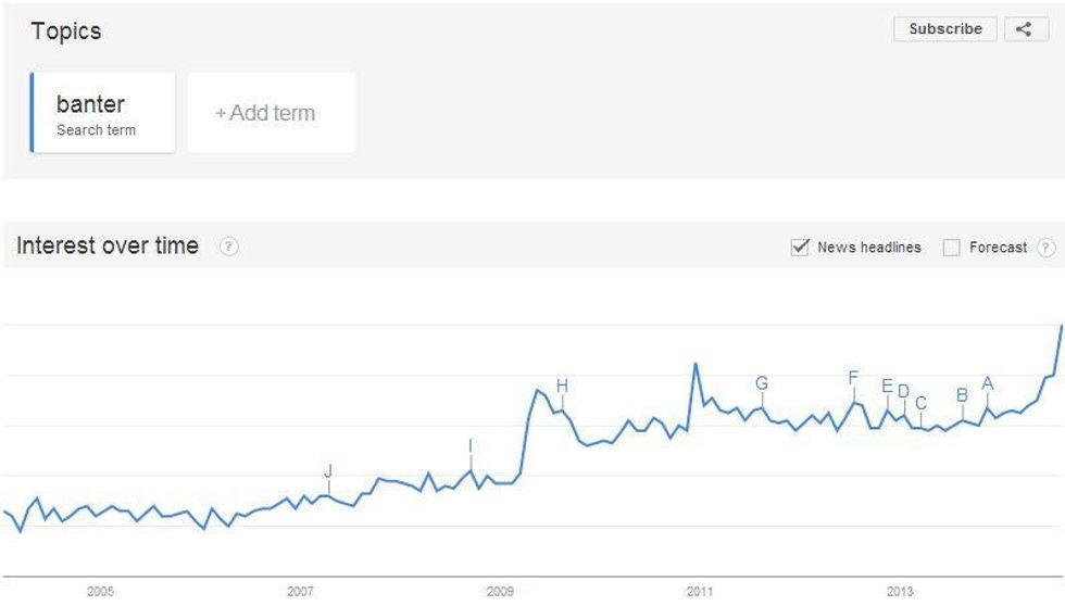 In other news, it appears we've now reached peak banter (according to Google Trends), although the most recent peak is based on incomplete data for this week.