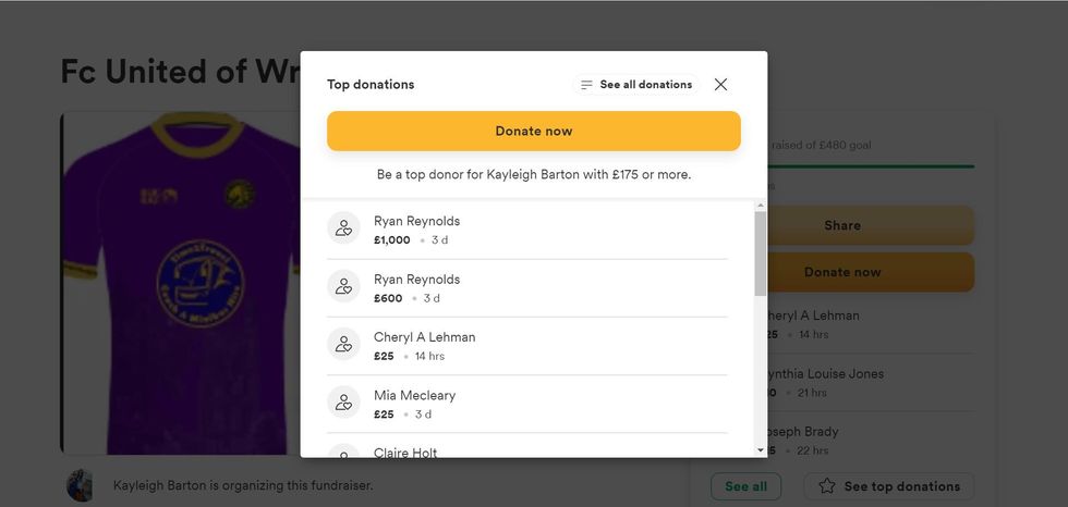 This charitable act from Reynolds came after FC United of Wrexham's founder and chairman, Andrew Ruscoe slid into the actor's DM's to ask him to share the GoFundMe to his 21m followers.