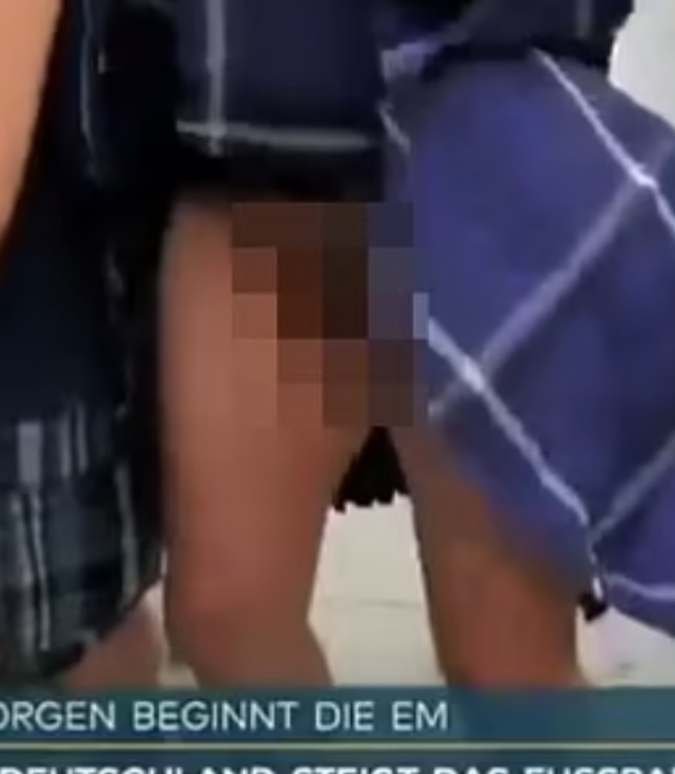 German TV viewers got more than they bargained for during their Thursday night viewing when a Scottish football fan accidentally revealed what was or what wasn't underneath his kilt during boisterous scenes.