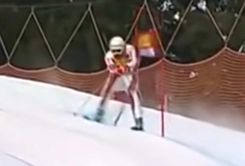 French skier Yannick Bertrand is the unfortunate star of the viral footage, which was filmed in the World Cup super-G race in Kvitfjell, Norway back in 2015.