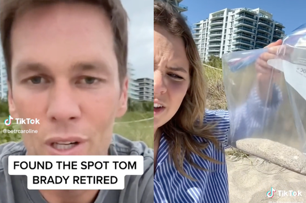 A TikTok user has devised a plan to ‘get her own back’ on Tom Brady by selling the sand he sat while filming his retirement video.