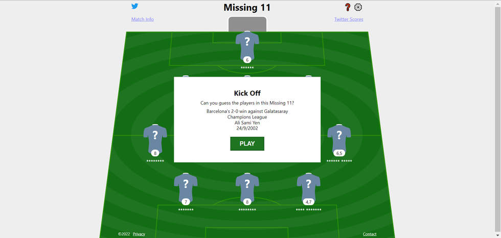 For the Missing 11 game, users have to guess the starting eleven players from a historical football match which is set daily - for example, today's match is Barcelona's 2-0 win against Galatasaray in the Champions League at Ali Sami Yen on 24/9/2002.