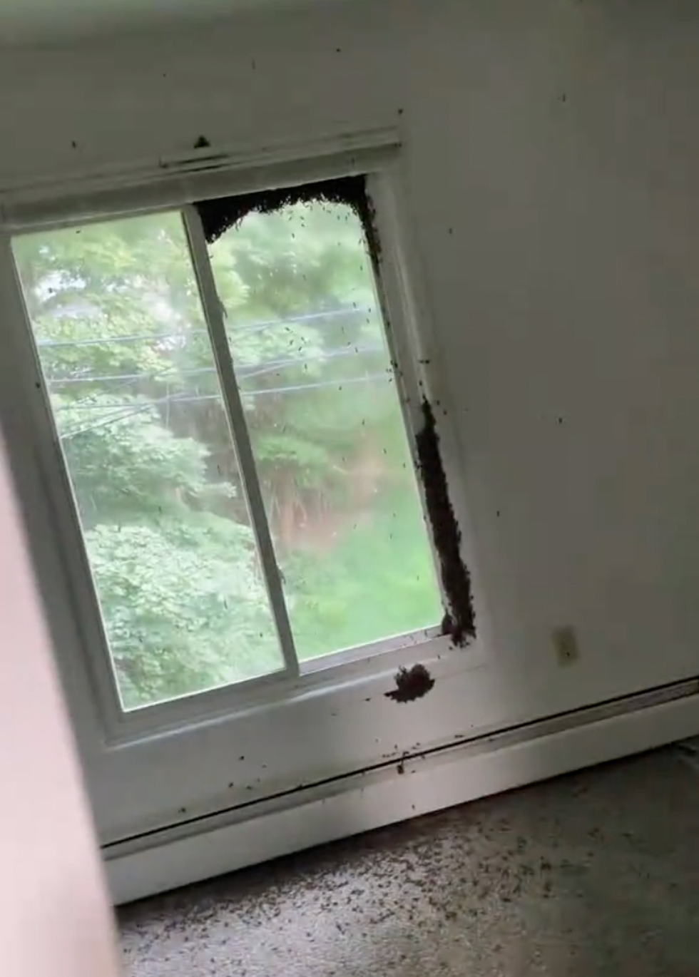 The TikToker went on to show a horrifying photo showing swarms of loose bees fixated on the window.