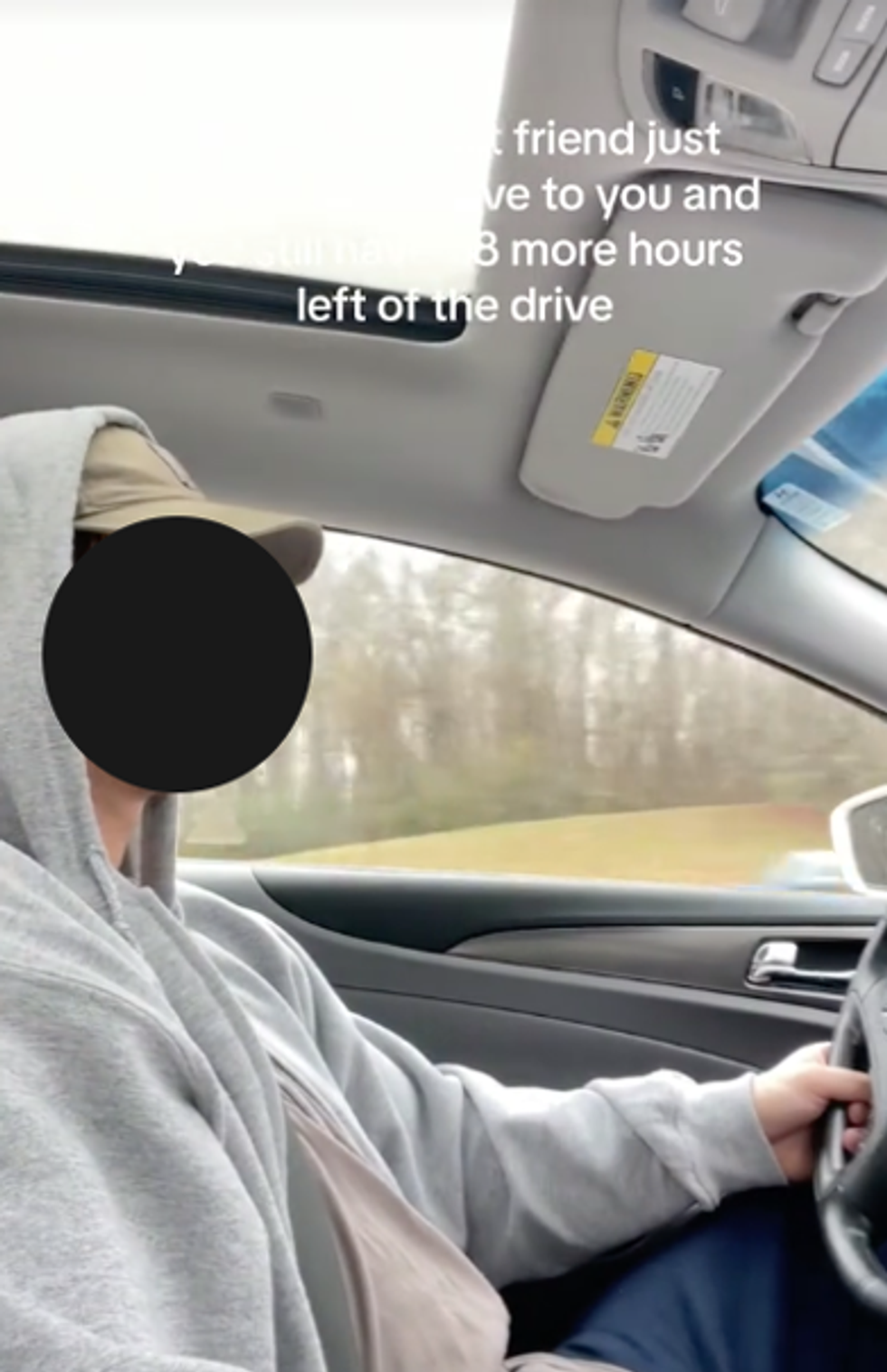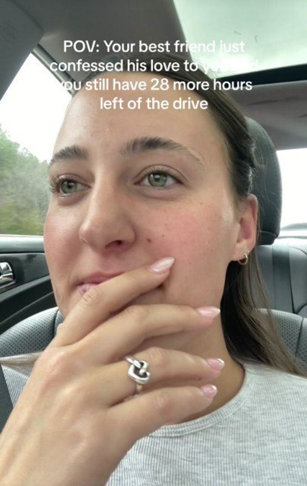 In a text overlay, she wrote: “POV: Your best friend just confessed his love to you and you still have 28 more hours left of the drive.”