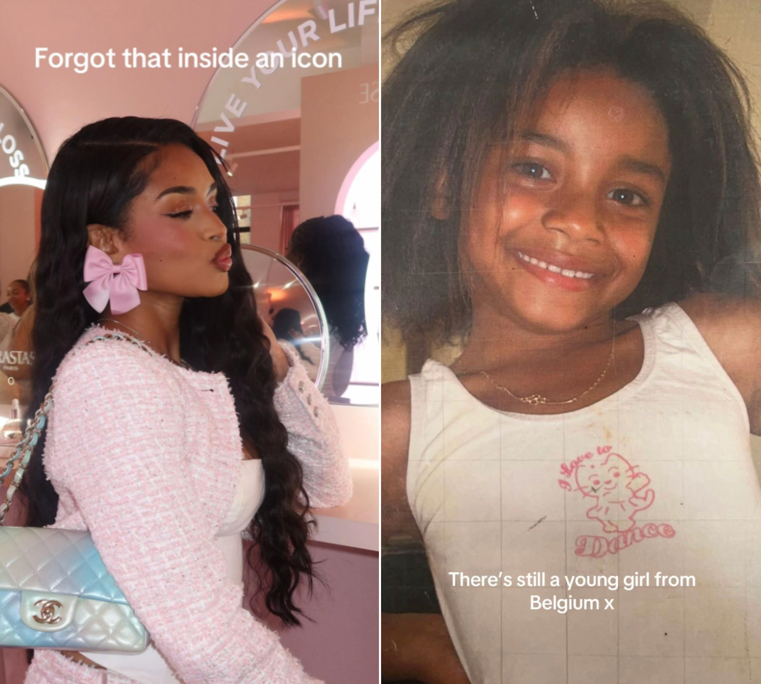 True to the trend, she shared a photo of her adult self, followed by an adorable snap of her as a child with the text: "There's still a young girl from Belgium x."