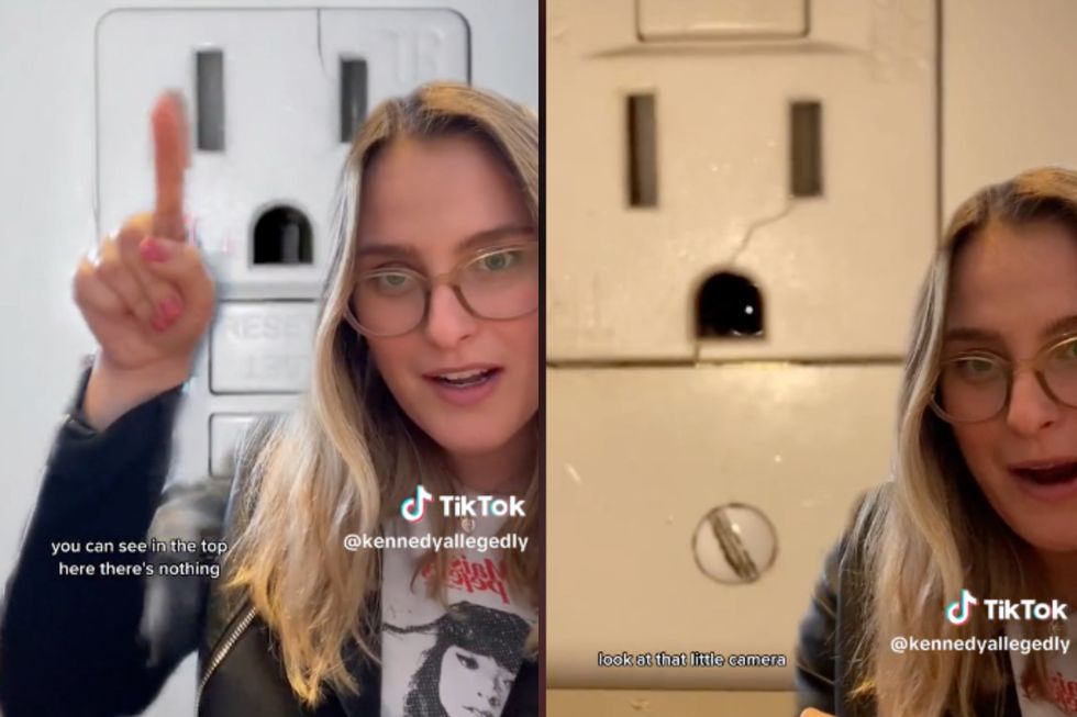 However, zooming in on the bottom socket, she revealed a tiny camera hidden in one of the prongs.