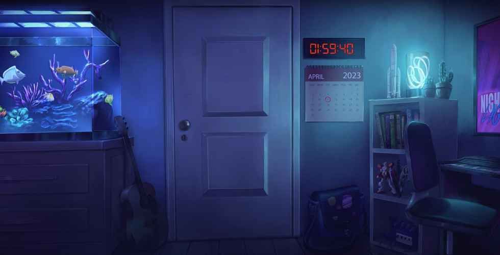 Now, a second stream on the site seems to be showing the inside of that blue room with a date circled on a calendar – April 11. There's also a countdown clock on the wall and a fancy fish tank for good measure.