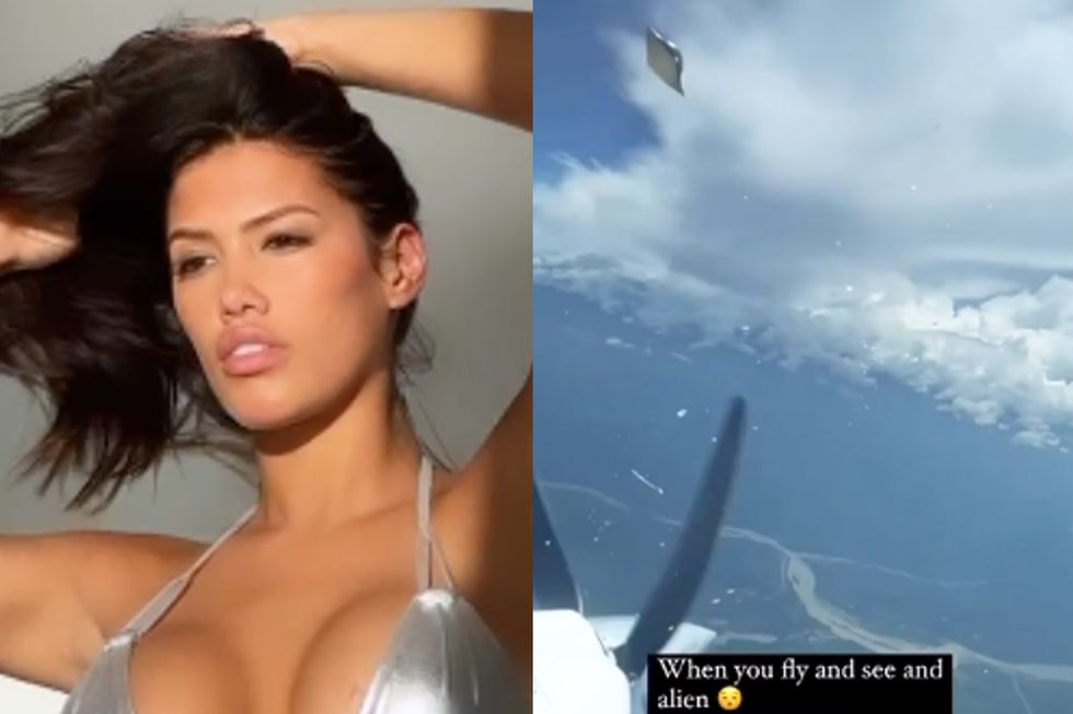 A model has shared what some are describing on social media as the 'best UFO footage ever' after spotting something strange during a flight.