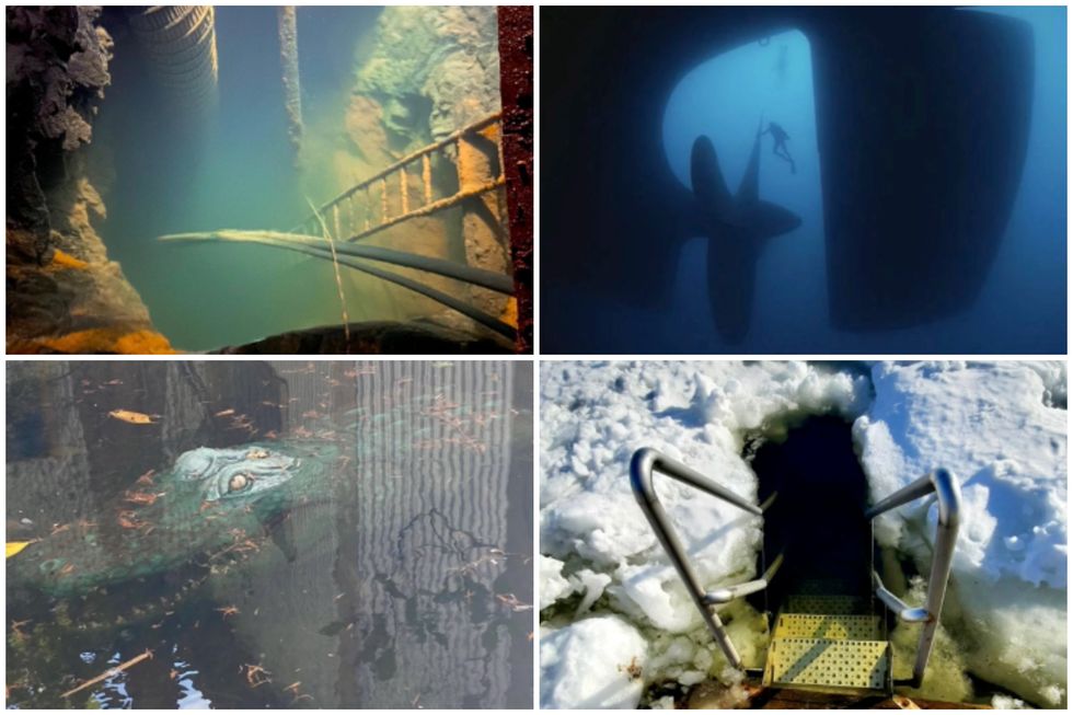 It begins with a picture of a flooded mine shaft before moving on to an eye-popping underwater statue.