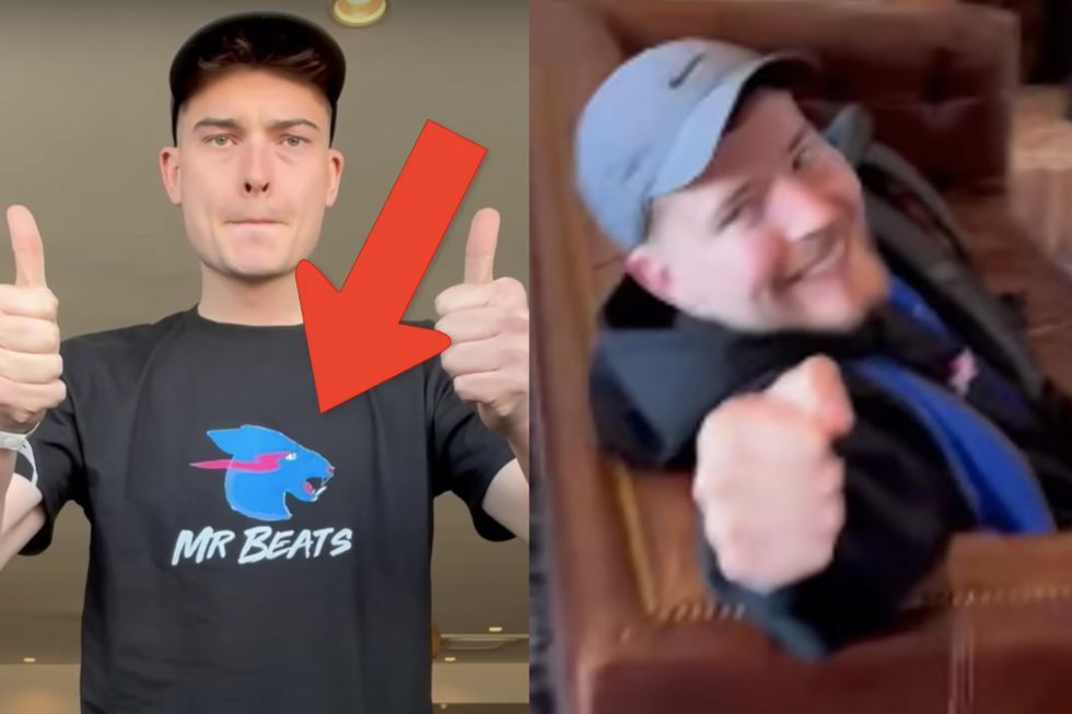 The video shows him wearing a T-shirt which features a logo similar to MrBeast’s blue tiger, and rather than “MrBeast” it instead reads “Mr Beats”.